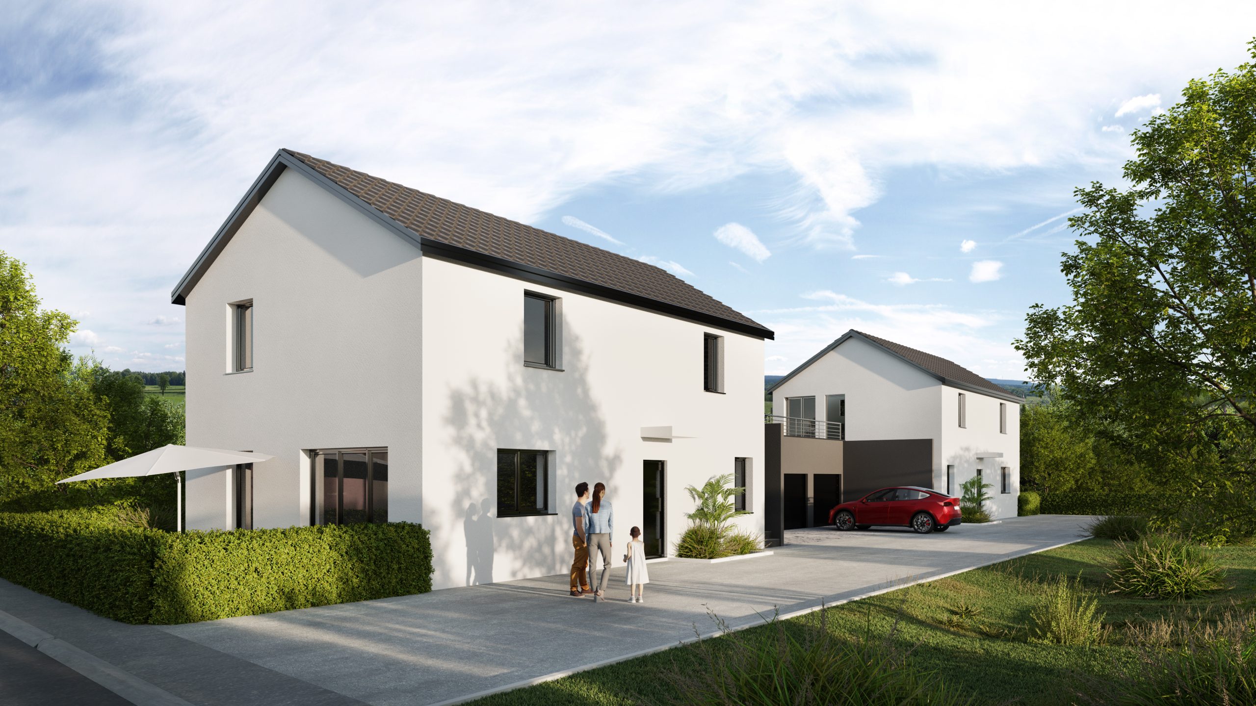 En choisissant Le Duo®, vous pourrez profiter d’un niveau de confort optimal au quotidien et dès votre arrivée. Vous disposerez d’un garage individuel et d’une place de parking privative pour faciliter le stationnement de votre véhicule. De plus, l’entrée séparée vers votre Rez-de-Jardin ou votre Attique préservera votre intimité. Une fois chez vous, vous profiterez de prestations de qualité ainsi que d’un magnifique espace extérieur, que ce soit un jardin verdoyant ou une vaste terrasse si vous préférez vivre en hauteur. De plus, grâce au concept Le Duo®, vous réaliserez des économies, car les charges de copropriété sont réduites. Vous bénéficierez également de prestations premium tels que du carrelage haut de gamme au format 60×60, une salle de bain équipée, des volets électriques, une pompe à chaleur, un plancher chauffant sur les deux niveaux, et bien plus encore ! Le concept Le Duo® vous offre un mode de vie unique, alliant confort, élégance et avec de nombreuses possibilités d’aménagement ! Un réel avantage lorsque l’on construit son propre logement, on peut le personnaliser pour qu’il corresponde à vos goûts et vos besoins !